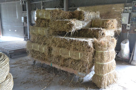ここで生まれるわら縄の特徴は「稲わら100%」。